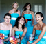 DRESS SHOWN: Courtney in Aqua (discontinued)/Ivory & Navy Sashes