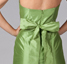 Slight sweetheart neckline, fitted through the hips. Gored skirt. Available with or without halter strap. Back zip. 45" skirt. Shown in lime silk shantung.